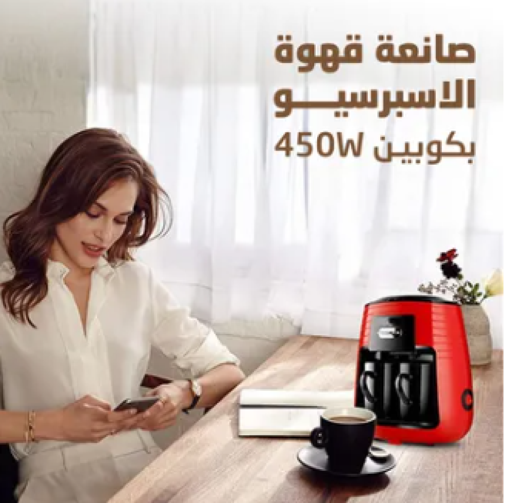 ✅ لا تفوّت الفرصة! اطلب الآن صانعة قهوة الاسبريسو بكوبين 450W من متجرنا واستمتع بالقهوة المفضلة لديك كل صباح بكل سهولة وأناقة!